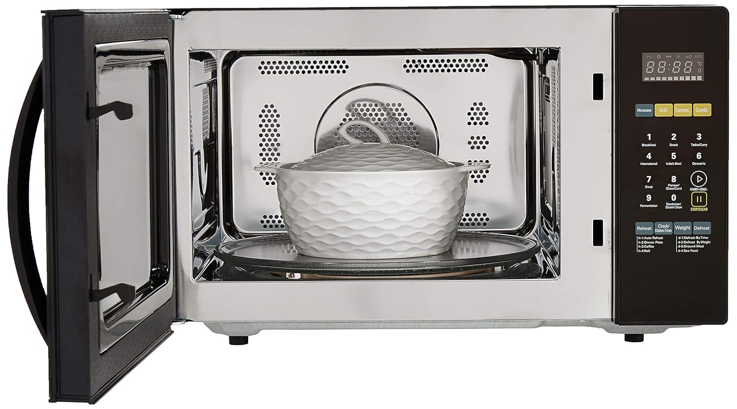 Bring home this Godrej microwave oven and enjoy preparing meals that are oil-free or use as little oil as possible. This microwave features 355 menus that can be accessed under the Instacook function. You can also use this microwave to prepare your favourite barbeque recipes.