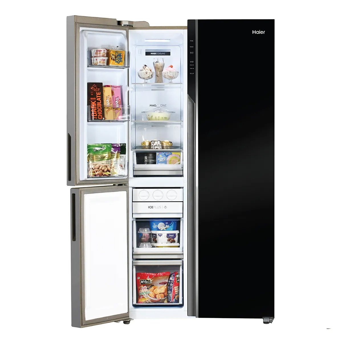Haier 598L 3-Door Vogue Side by Side Refrigerator Black White Glass 3 Star