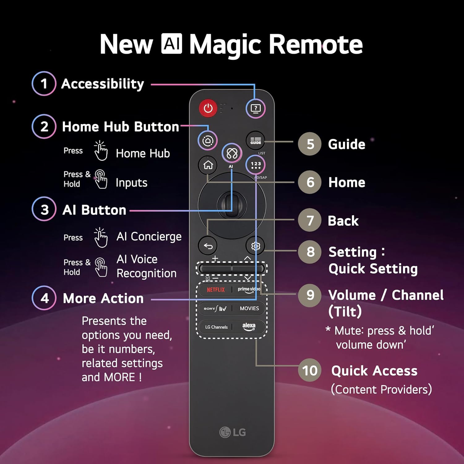 | Special Feature | AI Magic Remote, AI Search With MS Copilot, AI Sound Pro, AI Voice ID, Dynamic QNED Colors |