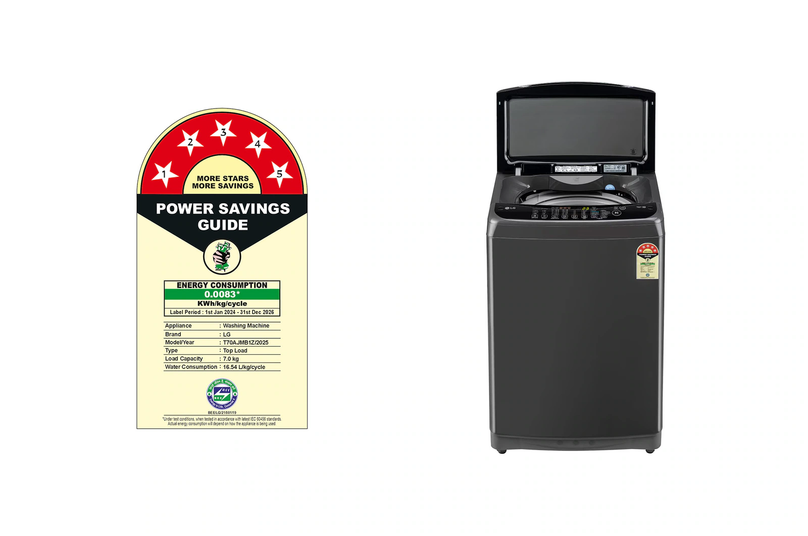 LG 7Kg Top Load Washing Machine, Smart Inverter, Auto Tub Clean, Middle Black, 5 Star