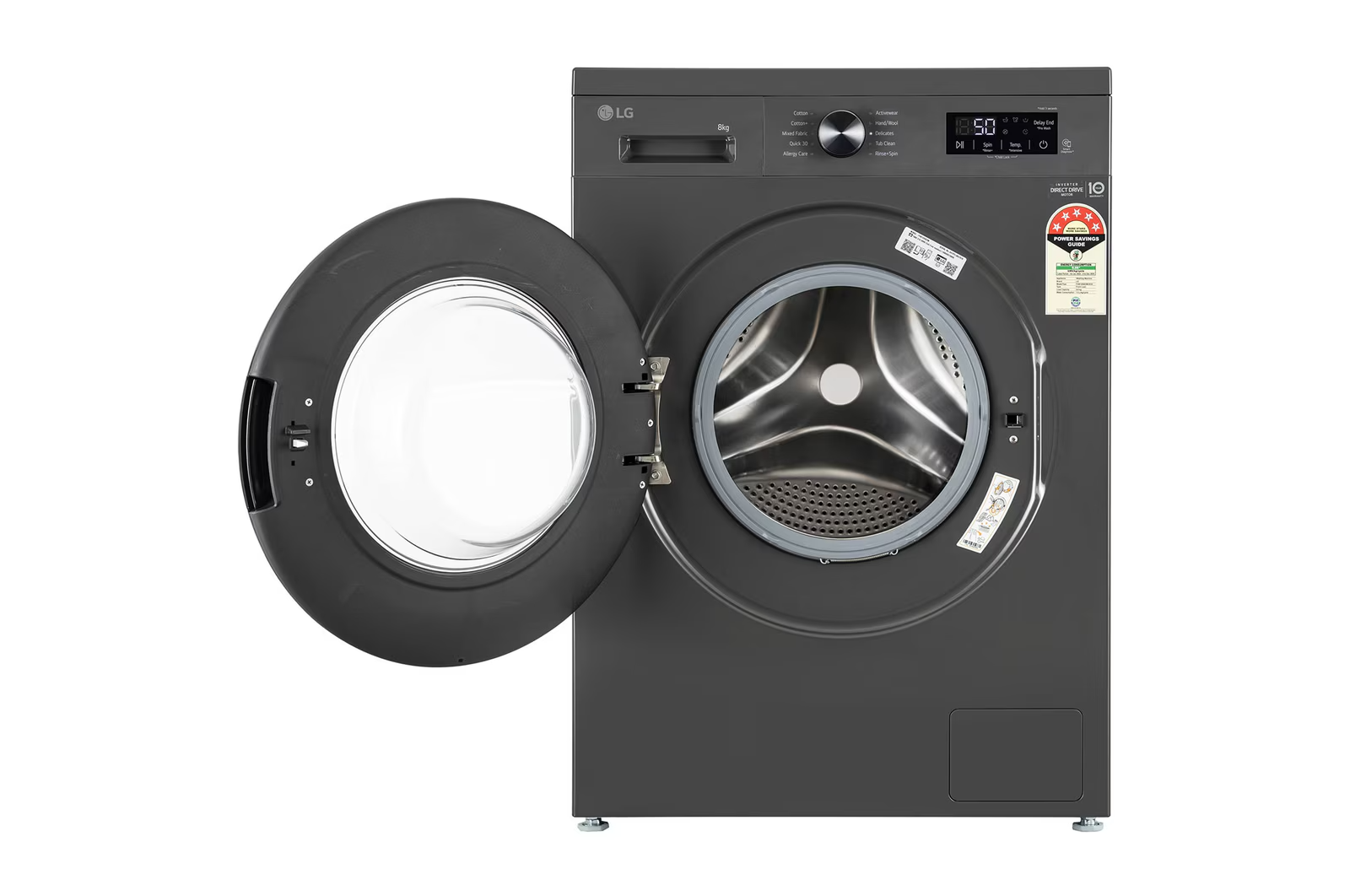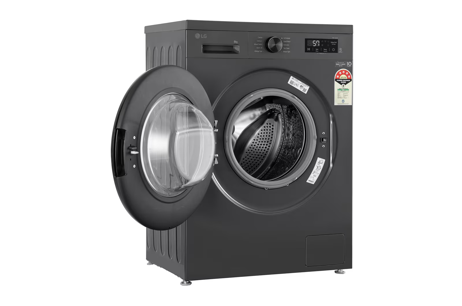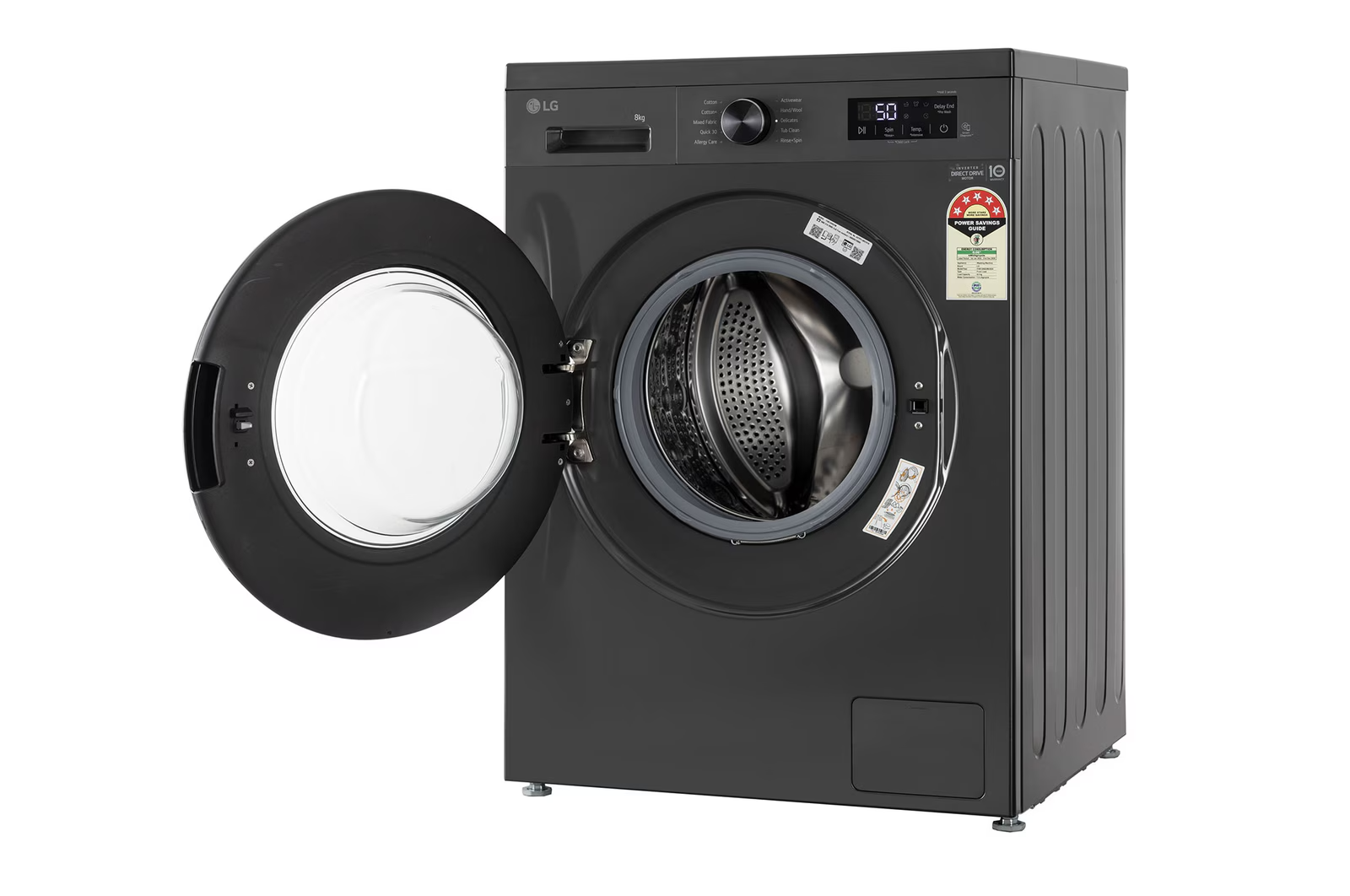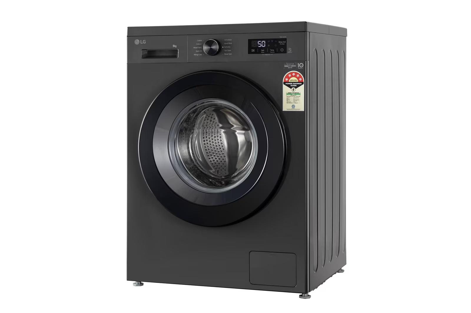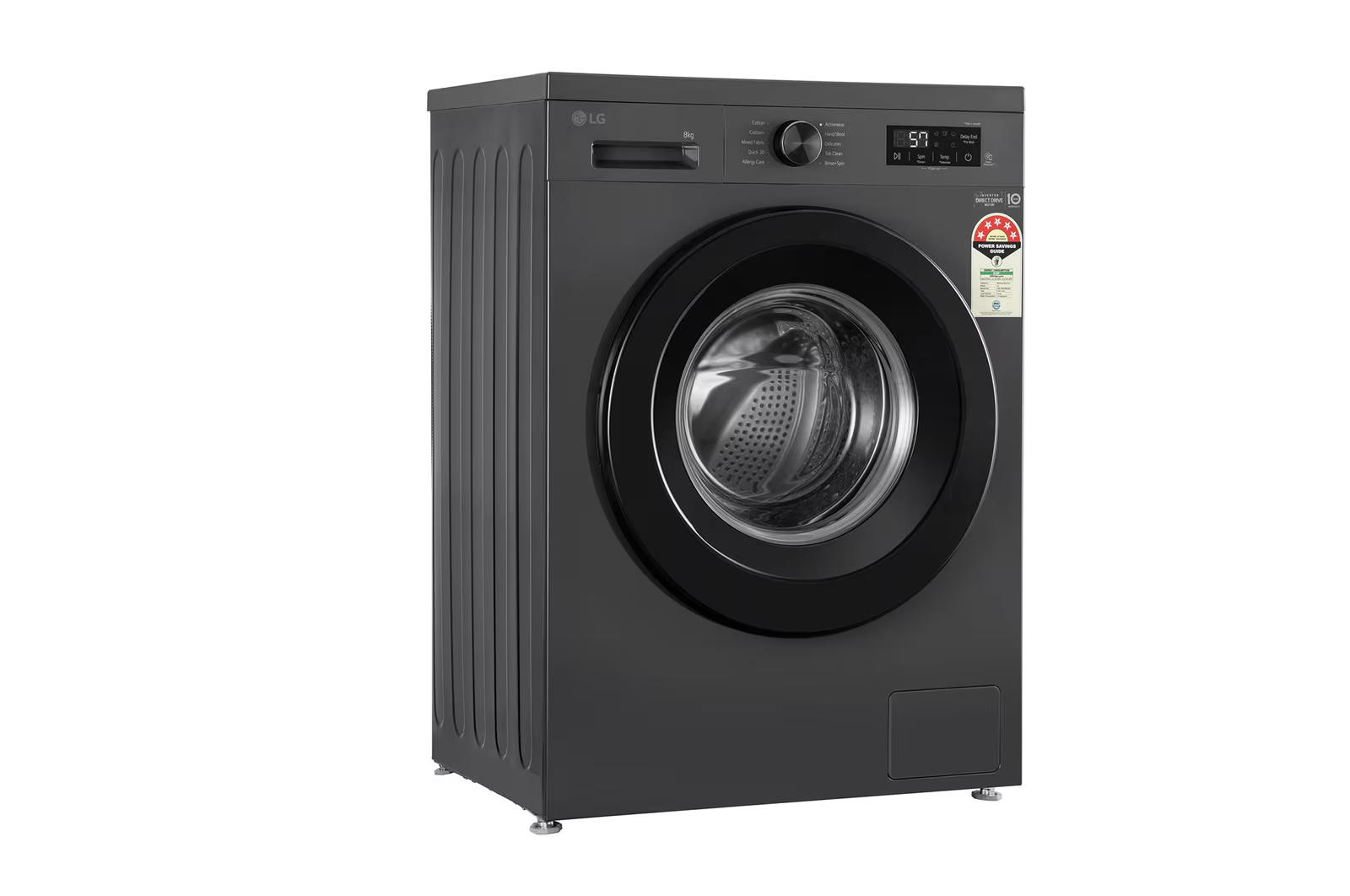 LG 8Kg Front Load Washing Machine, Inverter Direct Drive™, Middle Black, 5 Star