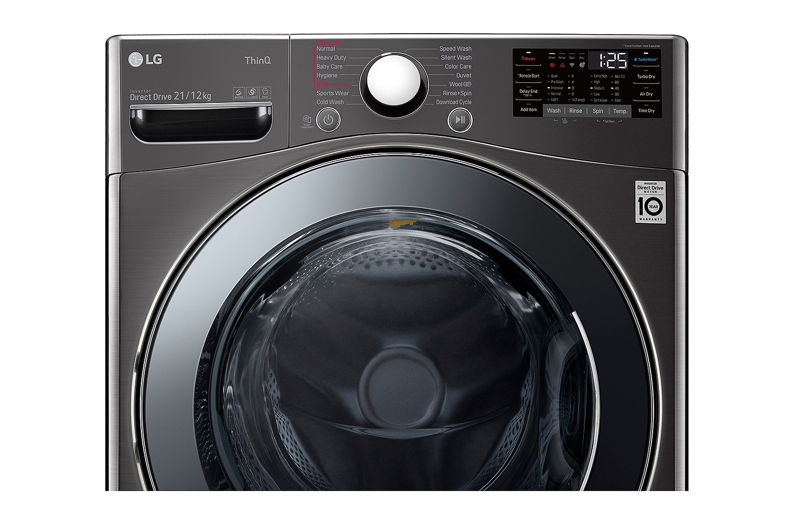 - Steam – Reduce germs & allergens with steam cycles
